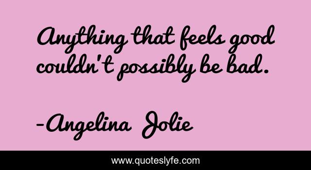 This page presents the quote "Anything that feels good couldn't possibly be bad.". Author of this quote is Angelina Jolie. This quote is about emotion, self-indulgence,.