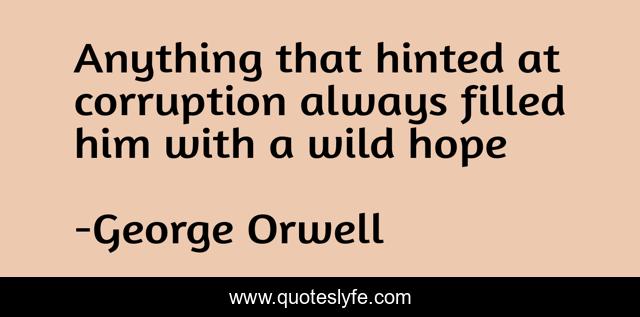 This page presents the quote "Anything that hinted at corruption always filled him with a wild hope". Author of this quote is George Orwell. This quote is about big-brother, 1984, george-orwell, hope, corruption,.