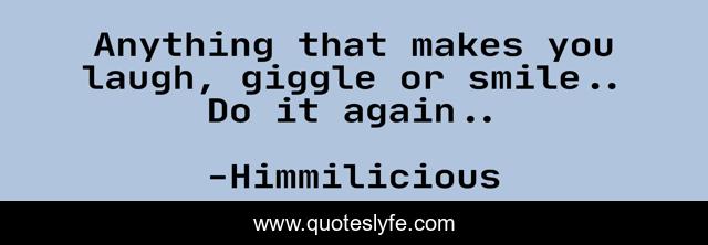 This page presents the quote "Anything that makes you laugh, giggle or smile.. Do it again..". Author of this quote is Himmilicious. .