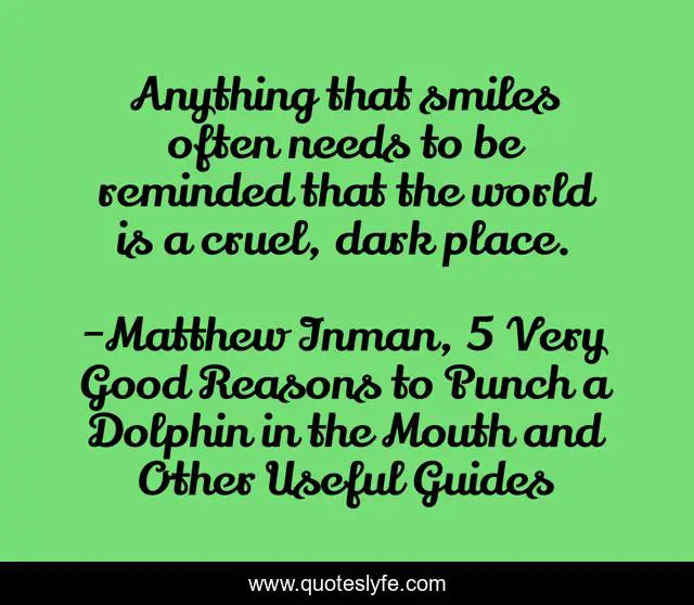 "Matthew Inman, 5 Very Good Reasons to Punch a Dolphin in the Mouth and Other Useful Guides Quotes." Quoteslyfe.com, 2025. Fri. 05 Dec. 2025. <https://www.quoteslyfe.com/quote/Anything-that-smiles-often-needs-to-be-9741>.