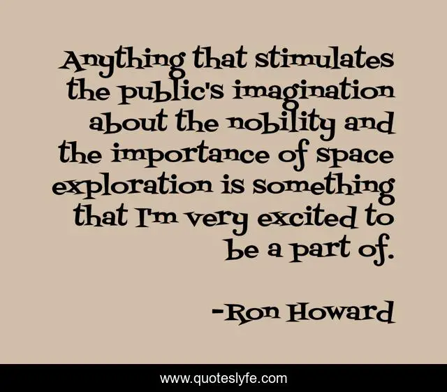 This page presents the quote "Anything that stimulates the public's imagination about the nobility and the importance of space exploration is something that I'm very excited to be a part of.". Author of this quote is Ron Howard. This quote is about imagination, exploration,.