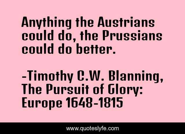 "Timothy C.W. Blanning, The Pursuit of Glory: Europe 1648-1815 Quotes." Quoteslyfe.com, 2025. Mon. 08 Dec. 2025. <https://www.quoteslyfe.com/quote/Anything-the-Austrians-could-do-the-Prussians-70419>.