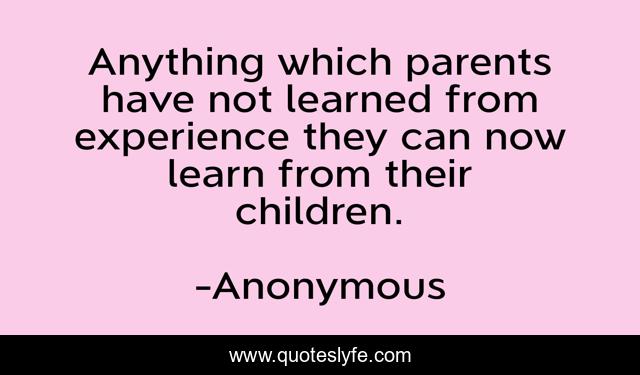 This page presents the quote "Anything which parents have not learned from experience they can now learn from their children.". Author of this quote is Anonymous. .