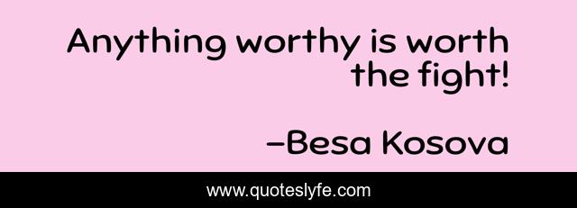 This page presents the quote "Anything worthy is worth the fight!". Author of this quote is Besa Kosova. This quote is about enthusiasm, inspirational, success,.