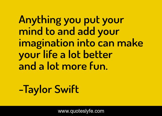 This page presents the quote "Anything you put your mind to and add your imagination into can make your life a lot better and a lot more fun.". Author of this quote is Taylor Swift. This quote is about fun, life, mind,.