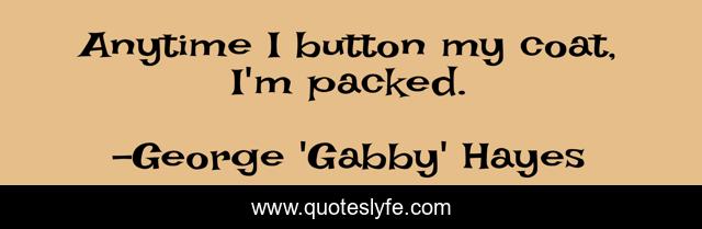 This page presents the quote "Anytime I button my coat, I'm packed.". Author of this quote is George 'Gabby' Hayes. This quote is about movies, humor, roy-rogers,.