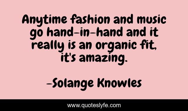 This page presents the quote "Anytime fashion and music go hand-in-hand and it really is an organic fit, it's amazing.". Author of this quote is Solange Knowles. This quote is about go, fashion, music,.