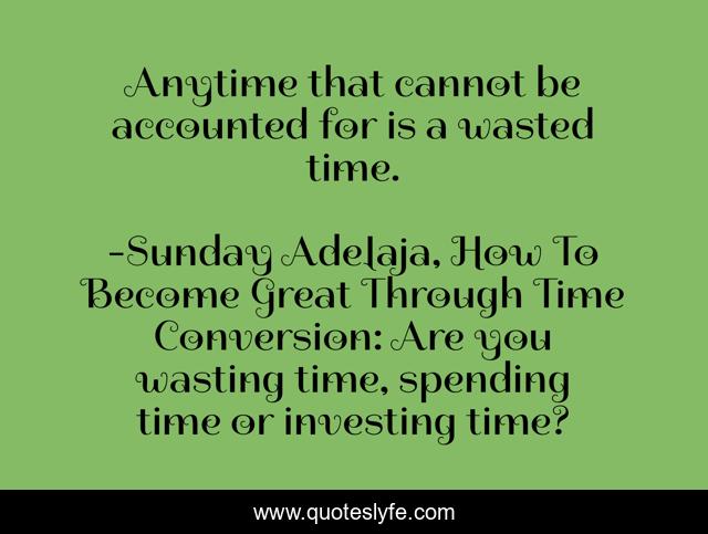 "Sunday Adelaja, How To Become Great Through Time Conversion: Are you wasting time, spending time or investing time? Quotes." Quoteslyfe.com, 2025. Fri. 05 Dec. 2025. <https://www.quoteslyfe.com/quote/Anytime-that-cannot-be-accounted-for-is-39303>.