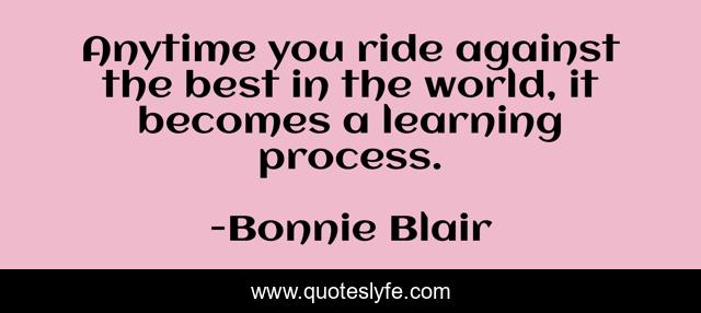 This page presents the quote "Anytime you ride against the best in the world, it becomes a learning process.". Author of this quote is Bonnie Blair. This quote is about world, best,.