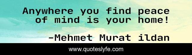 This page presents the quote "Anywhere you find peace of mind is your home!". Author of this quote is Mehmet Murat ildan. This quote is about turkish-aphorisms, peace-of-mind, mehmet-murat-ildan, ildan-wise-sayings, turkish, ildan-wisdom, turkish-sayings, turkish-playwrights, turkish-wisdom-words,.