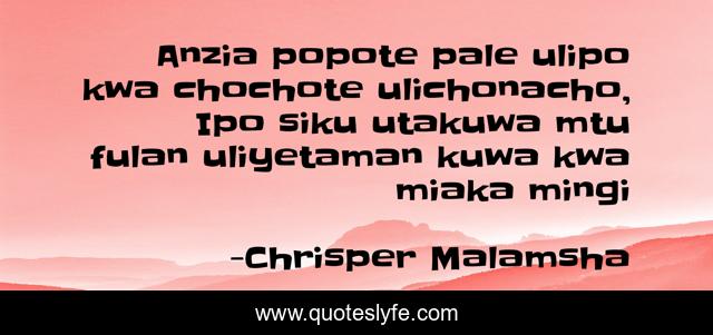 "Chrisper Malamsha Quotes." Quoteslyfe.com, 2025. Mon. 08 Dec. 2025. <https://www.quoteslyfe.com/quote/Anzia-popote-pale-ulipo-kwa-chochote-ulichonacho-20193>.