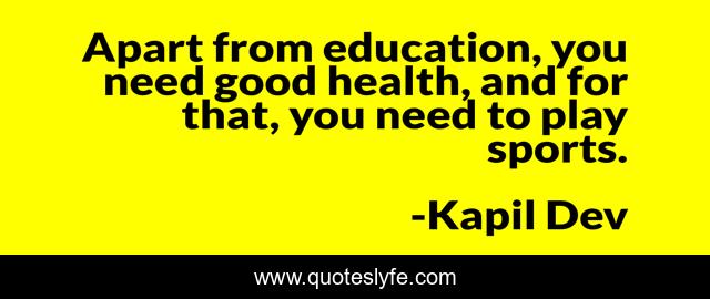 This page presents the quote "Apart from education, you need good health, and for that, you need to play sports.". Author of this quote is Kapil Dev. This quote is about health, good, education,.