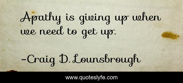"Craig D. Lounsbrough Quotes." Quoteslyfe.com, 2025. Fri. 05 Dec. 2025. <https://www.quoteslyfe.com/quote/Apathy-is-giving-up-when-we-need-104287>.