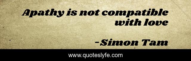 "Simon Tam Quotes." Quoteslyfe.com, 2025. Fri. 05 Dec. 2025. <https://www.quoteslyfe.com/quote/Apathy-is-not-compatible-with-love-176399>.