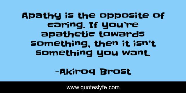 This page presents the quote "Apathy is the opposite of caring. If you’re apathetic towards something, then it isn’t something you want.". Author of this quote is Akiroq Brost. This quote is about apathy, perspective, truth,.