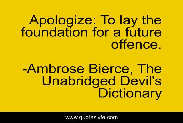 "Ambrose Bierce, The Unabridged Devil's Dictionary Quotes." Quoteslyfe.com, 2025. Fri. 05 Dec. 2025. <https://www.quoteslyfe.com/quote/Apologize-To-lay-the-foundation-for-a-212748>.