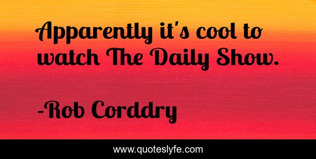 This page presents the quote "Apparently it's cool to watch The Daily Show.". Author of this quote is Rob Corddry. This quote is about watch, daily, show,.
