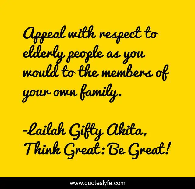 "Lailah Gifty Akita, Think Great: Be Great! Quotes." Quoteslyfe.com, 2025. Mon. 08 Dec. 2025. <https://www.quoteslyfe.com/quote/Appeal-with-respect-to-elderly-people-as-86452>.