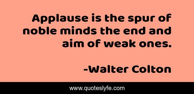 This page presents the quote "Applause is the spur of noble minds the end and aim of weak ones.". Author of this quote is Walter Colton. .