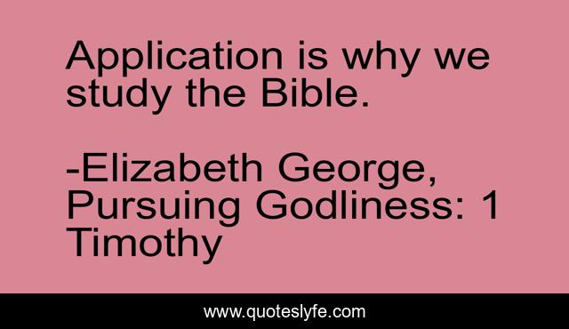"Elizabeth George, Pursuing Godliness: 1 Timothy Quotes." Quoteslyfe.com, 2025. Mon. 08 Dec. 2025. <https://www.quoteslyfe.com/quote/Application-is-why-we-study-the-Bible-169398>.