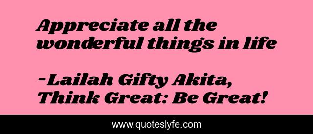 "Lailah Gifty Akita, Think Great: Be Great! Quotes." Quoteslyfe.com, 2025. Fri. 05 Dec. 2025. <https://www.quoteslyfe.com/quote/Appreciate-all-the-wonderful-things-in-life-86397>.