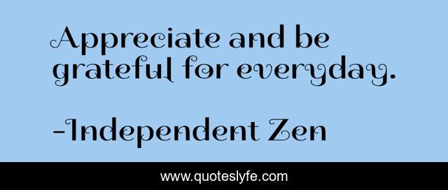 "Independent Zen Quotes." Quoteslyfe.com, 2025. Sat. 06 Dec. 2025. <https://www.quoteslyfe.com/quote/Appreciate-and-be-grateful-for-everyday-240477>.