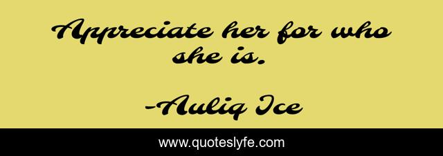 "Auliq Ice Quotes." Quoteslyfe.com, 2025. Sat. 06 Dec. 2025. <https://www.quoteslyfe.com/quote/Appreciate-her-for-who-she-is-77417>.