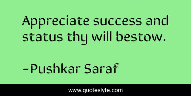 This page presents the quote "Appreciate success and status thy will bestow.". Author of this quote is Pushkar Saraf. This quote is about status, appreciation, bestow, success,.