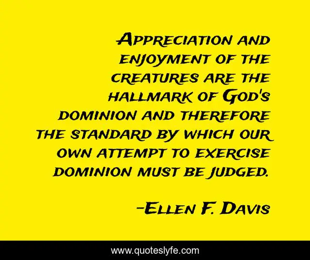 "Ellen F. Davis Quotes." Quoteslyfe.com, 2025. Sat. 06 Dec. 2025. <https://www.quoteslyfe.com/quote/Appreciation-and-enjoyment-of-the-creatures-are-199580>.