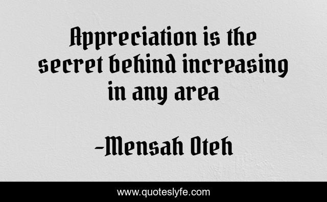 "Mensah Oteh Quotes." Quoteslyfe.com, 2025. Sun. 07 Dec. 2025. <https://www.quoteslyfe.com/quote/Appreciation-is-the-secret-behind-increasing-in-49213>.