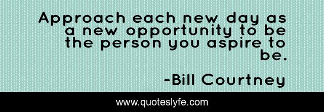 This page presents the quote "Approach each new day as a new opportunity to be the person you aspire to be.". Author of this quote is Bill Courtney. This quote is about be, approach, aspiration, believer, person, aspire, new, believe, opportunity,.