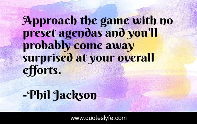 This page presents the quote "Approach the game with no preset agendas and you'll probably come away surprised at your overall efforts.". Author of this quote is Phil Jackson. .
