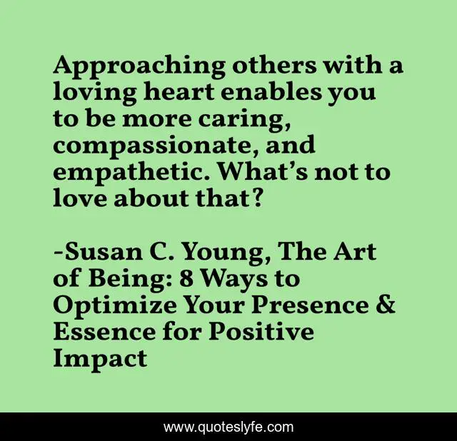 "Susan C. Young, The Art of Being: 8 Ways to Optimize Your Presence & Essence for Positive Impact Quotes." Quoteslyfe.com, 2025. Fri. 05 Dec. 2025. <https://www.quoteslyfe.com/quote/Approaching-others-with-a-loving-heart-enables-144116>.