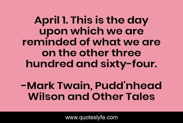 This page presents the quote "April 1. This is the day upon which we are reminded of what we are on the other three hundred and sixty-four.". Author of this quote is Mark Twain, Pudd'nhead Wilson and Other Tales. .