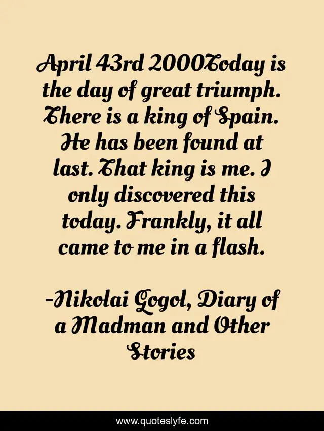 "Nikolai Gogol, Diary of a Madman and Other Stories Quotes." Quoteslyfe.com, 2025. Sat. 06 Dec. 2025. <https://www.quoteslyfe.com/quote/April-43rd-2000Today-is-the-day-of-160006>.