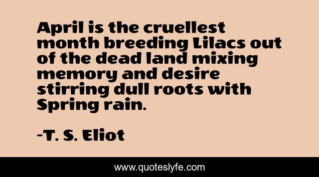 "T. S. Eliot Quotes." Quoteslyfe.com, 2025. Fri. 05 Dec. 2025. <https://www.quoteslyfe.com/quote/April-is-the-cruellest-month-breeding-Lilacs-277843>.