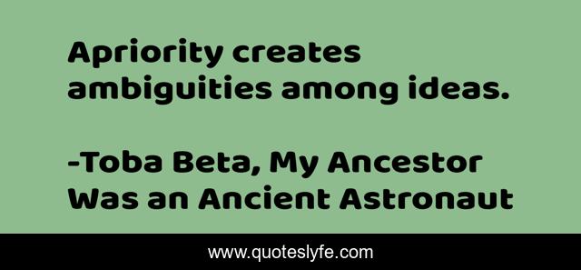 "Toba Beta, My Ancestor Was an Ancient Astronaut Quotes." Quoteslyfe.com, 2025. Sat. 06 Dec. 2025. <https://www.quoteslyfe.com/quote/Apriority-creates-ambiguities-among-ideas-111006>.