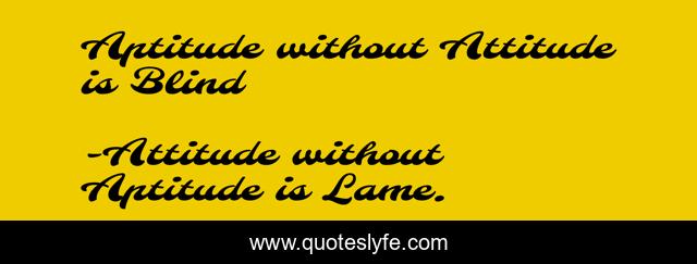 "Attitude without Aptitude is Lame. Quotes." Quoteslyfe.com, 2025. Sat. 06 Dec. 2025. <https://www.quoteslyfe.com/quote/Aptitude-without-Attitude-is-Blind-227608>.