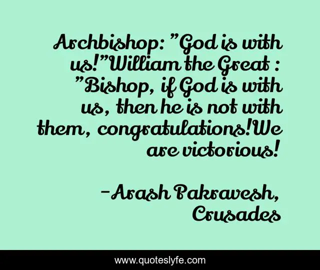 "Arash Pakravesh, Crusades Quotes." Quoteslyfe.com, 2025. Sun. 07 Dec. 2025. <https://www.quoteslyfe.com/quote/Archbishop-God-is-with-us-William-the-251328>.