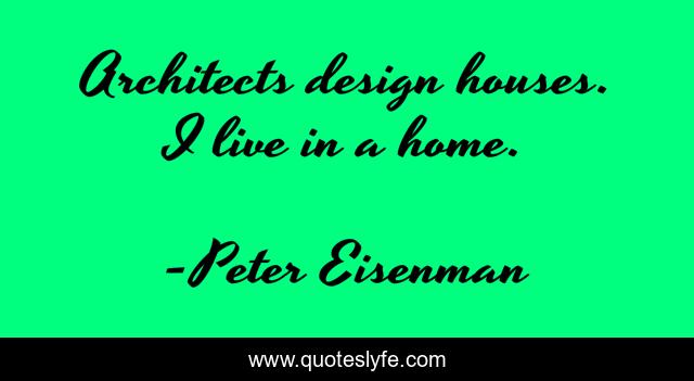 "Peter Eisenman Quotes." Quoteslyfe.com, 2025. Sat. 06 Dec. 2025. <https://www.quoteslyfe.com/quote/Architects-design-houses-I-live-in-a-314737>.