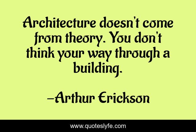 "Arthur Erickson Quotes." Quoteslyfe.com, 2025. Fri. 05 Dec. 2025. <https://www.quoteslyfe.com/quote/Architecture-doesn-t-come-from-theory-You-299524>.