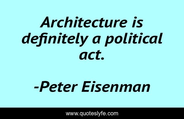 This page presents the quote "Architecture is definitely a political act.". Author of this quote is Peter Eisenman. This quote is about definitely, political, act,.