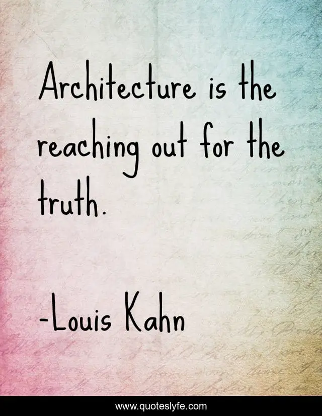 "Louis Kahn Quotes." Quoteslyfe.com, 2025. Fri. 05 Dec. 2025. <https://www.quoteslyfe.com/quote/Architecture-is-the-reaching-out-for-the-299351>.