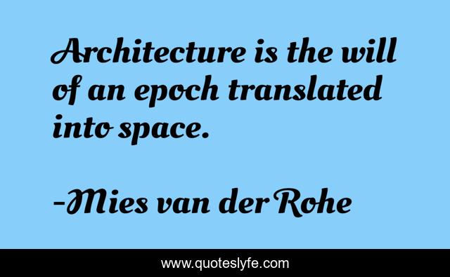 This page presents the quote "Architecture is the will of an epoch translated into space.". Author of this quote is Mies van der Rohe. This quote is about architecture, architects,.