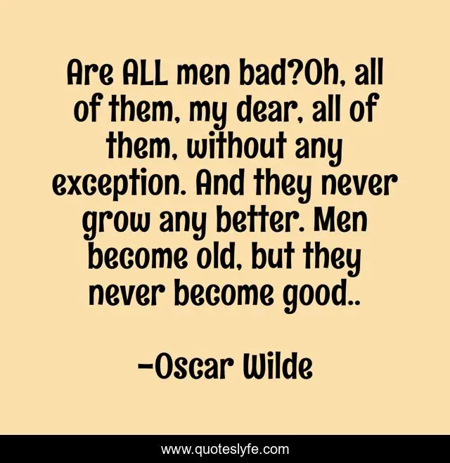"Oscar Wilde Quotes." Quoteslyfe.com, 2025. Mon. 08 Dec. 2025. <https://www.quoteslyfe.com/quote/Are-ALL-men-bad-Oh-all-of-127644>.