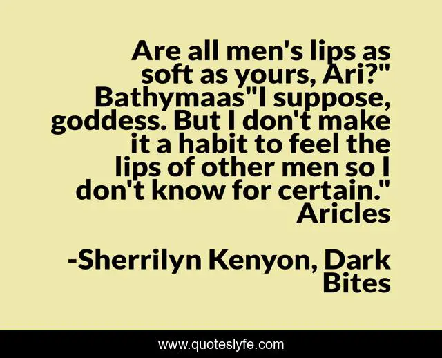 "Sherrilyn Kenyon, Dark Bites Quotes." Quoteslyfe.com, 2025. Fri. 05 Dec. 2025. <https://www.quoteslyfe.com/quote/Are-all-men-s-lips-as-soft-217430>.
