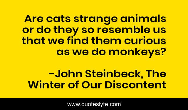 This page presents the quote "Are cats strange animals or do they so resemble us that we find them curious as we do monkeys?". Author of this quote is John Steinbeck, The Winter of Our Discontent. .