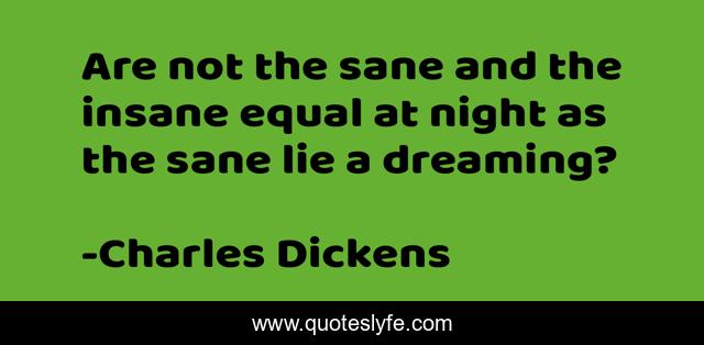 This page presents the quote "Are not the sane and the insane equal at night as the sane lie a dreaming?". Author of this quote is Charles Dickens. This quote is about psychiatry, parity, sanity, insanity,.