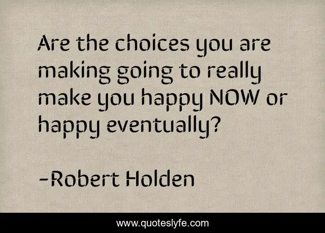 This page presents the quote "Are the choices you are making going to really make you happy NOW or happy eventually?". Author of this quote is Robert Holden. This quote is about choice, happy,.