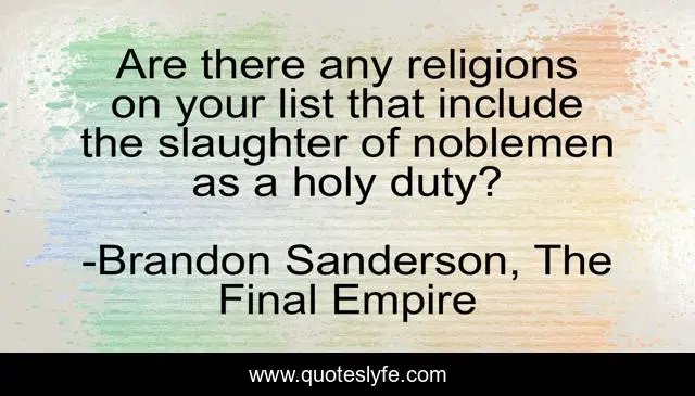 "Brandon Sanderson, The Final Empire Quotes." Quoteslyfe.com, 2025. Fri. 05 Dec. 2025. <https://www.quoteslyfe.com/quote/Are-there-any-religions-on-your-list-29901>.